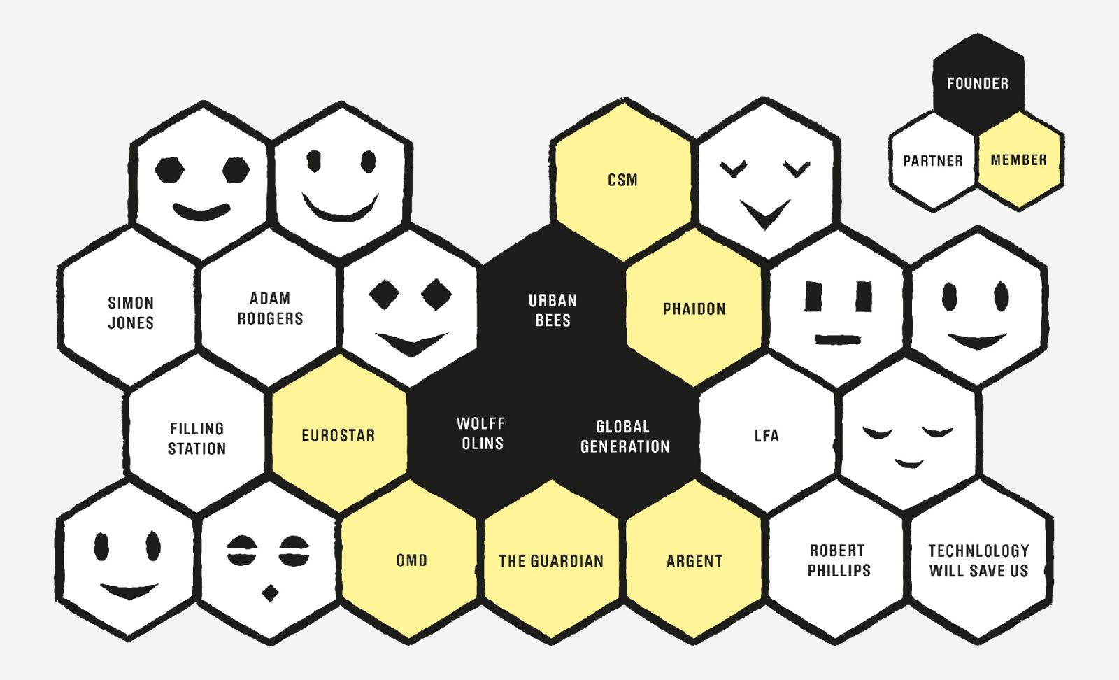 The Honey Club is a social enterprise designed to foster a network of community beekeepers; protecting bees, improving urban environments and encouraging local exchange. Bringing together high-profile backers, local businesses and young people, it is a combined venture by Wolff Olins (providing brand expertise), Global Generation (specialising in youth engagement) and Urban Bees (expert apiarists).